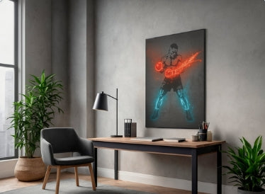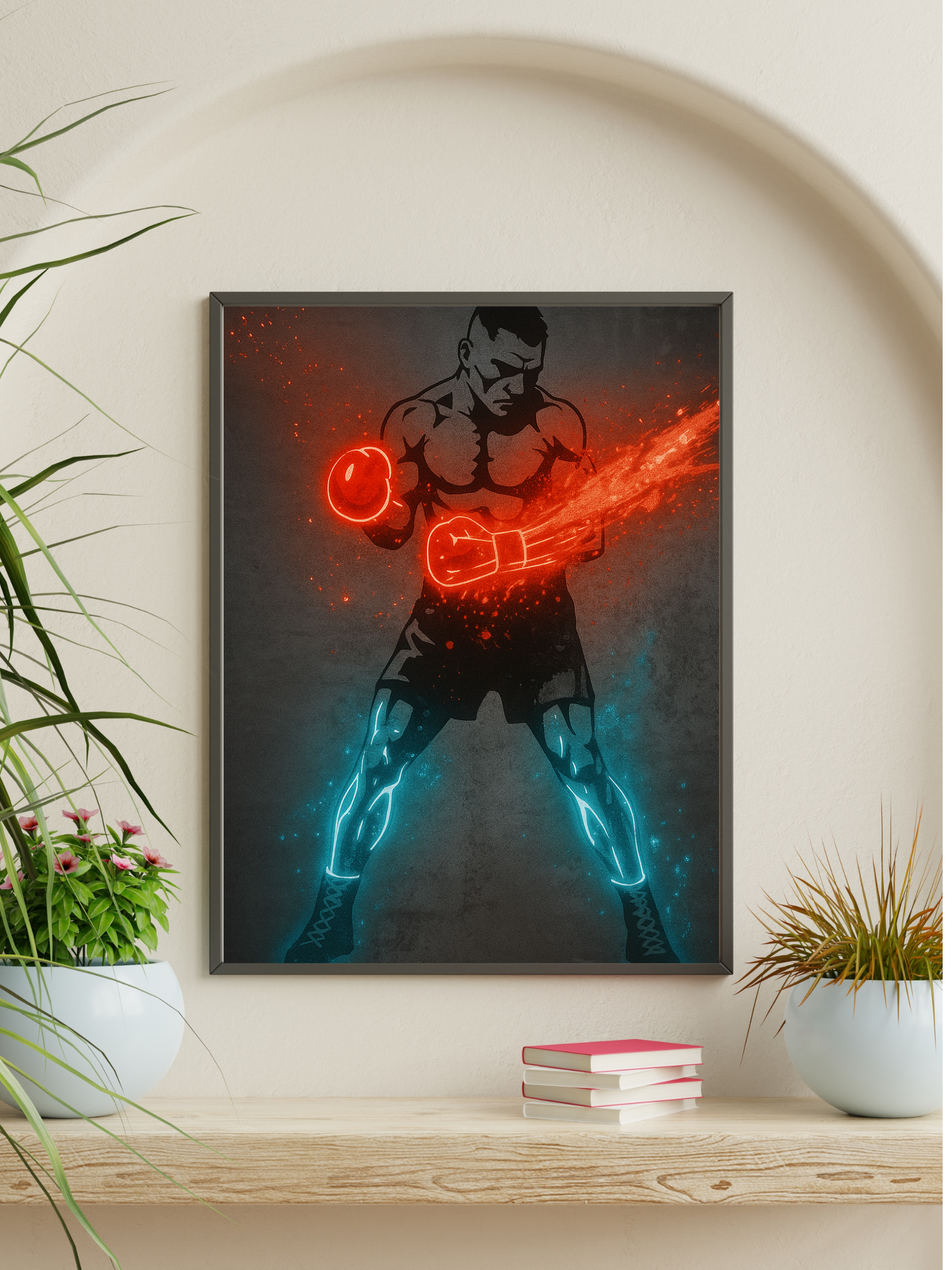 Electric Fighter Neon Boxing Poster | Red & Blue Glow Fighter Wall Art | Modern Fight Sports Decor | Motivational Boxing Print for Gym or Man Cave